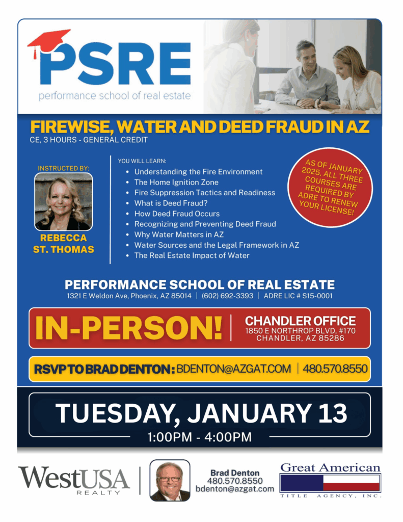 LIVE CE CLASS: CE Class – Firewise, Water & Deed Fraud in AZ – 3 hour General