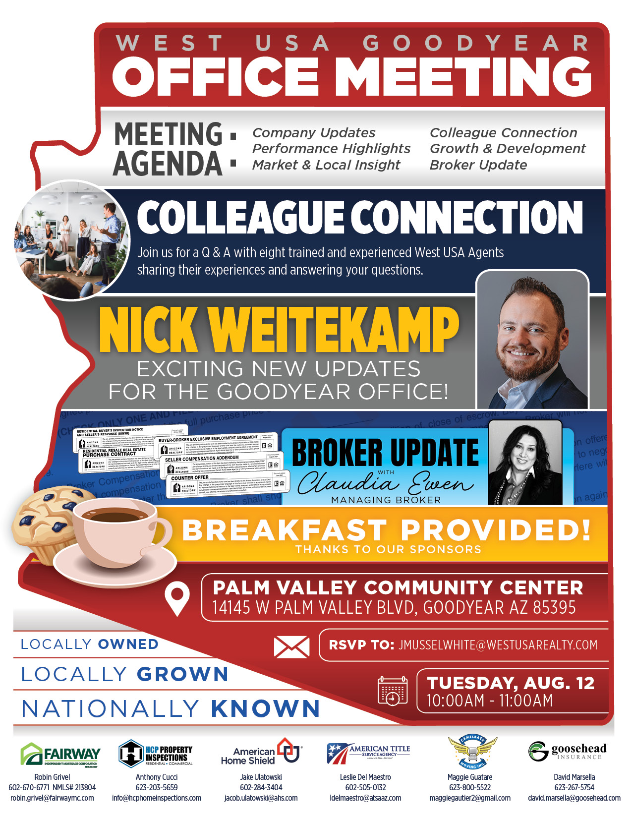 September 18, 2025 @ 10:00 am - 11:00 am Morning Brew, Coffee and Collaboration Morning Brew, Coffee and Collaboration Goodyear Office 2920 N. Litchfield RD Suite #100, Goodyear, AZ, United States RSVP: ldelmaestro@atsaaz.com or goodyear@westusareatly.com